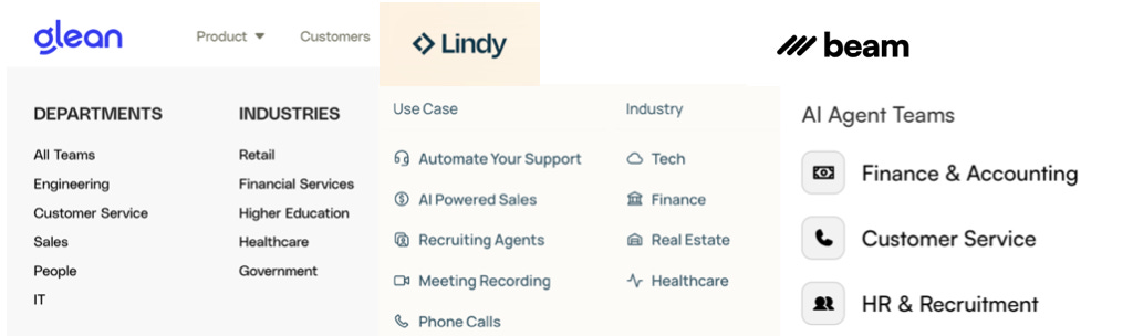 The strategy that works: Startups become successful by focusing on one or two verticals, and successful ones sometimes expand to many other verticals. Glean serves many verticals, yet has been around for six years and has lead a Series F round to grow. Lindy and Beam, have been around for two to three years, doing fewer verticals and less revenue.