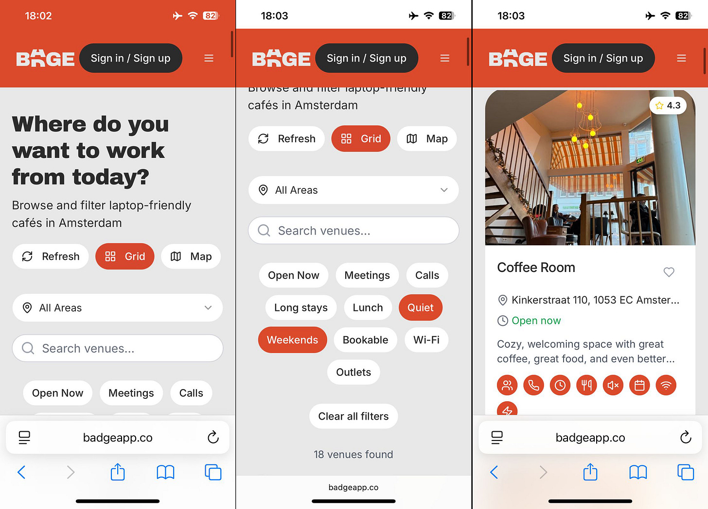 Now, Badge is conquering Amsterdam borough by borough. To avoid premature scaling, first nail product-market fit in one neighbourhood (West). Want to try? Visit them here.