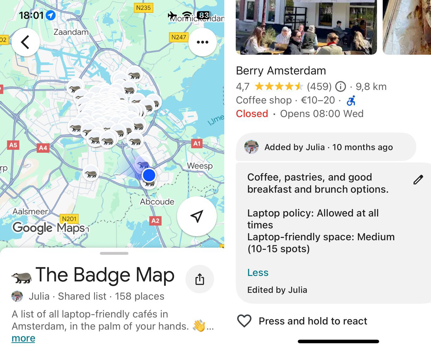 To test whether more people shared that pain, she made a simple prototype using a Google Maps layer with hand-curated laptop-friendly places.