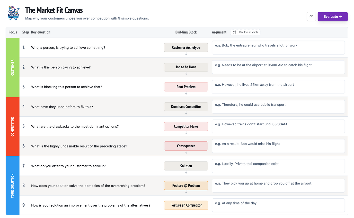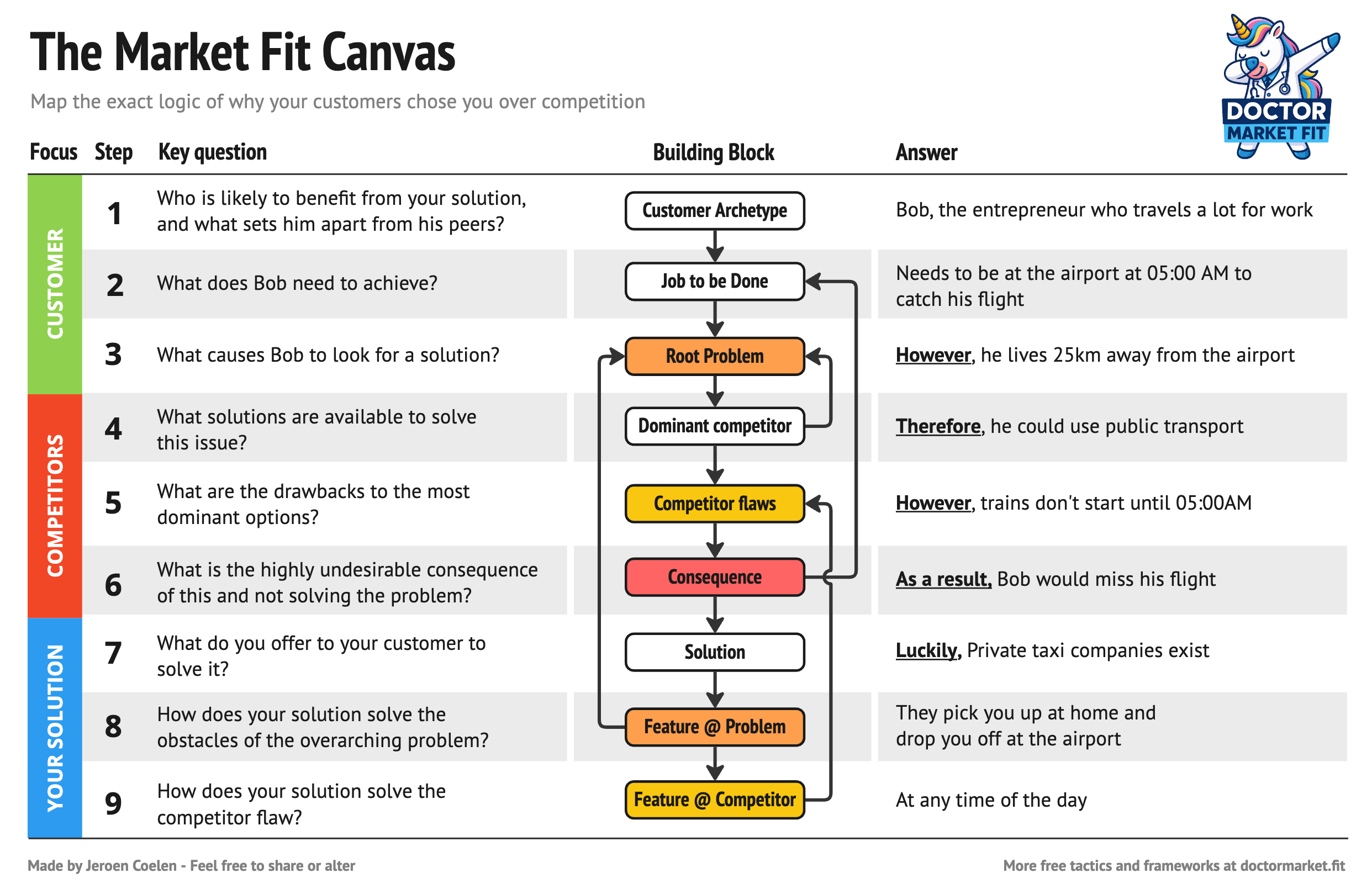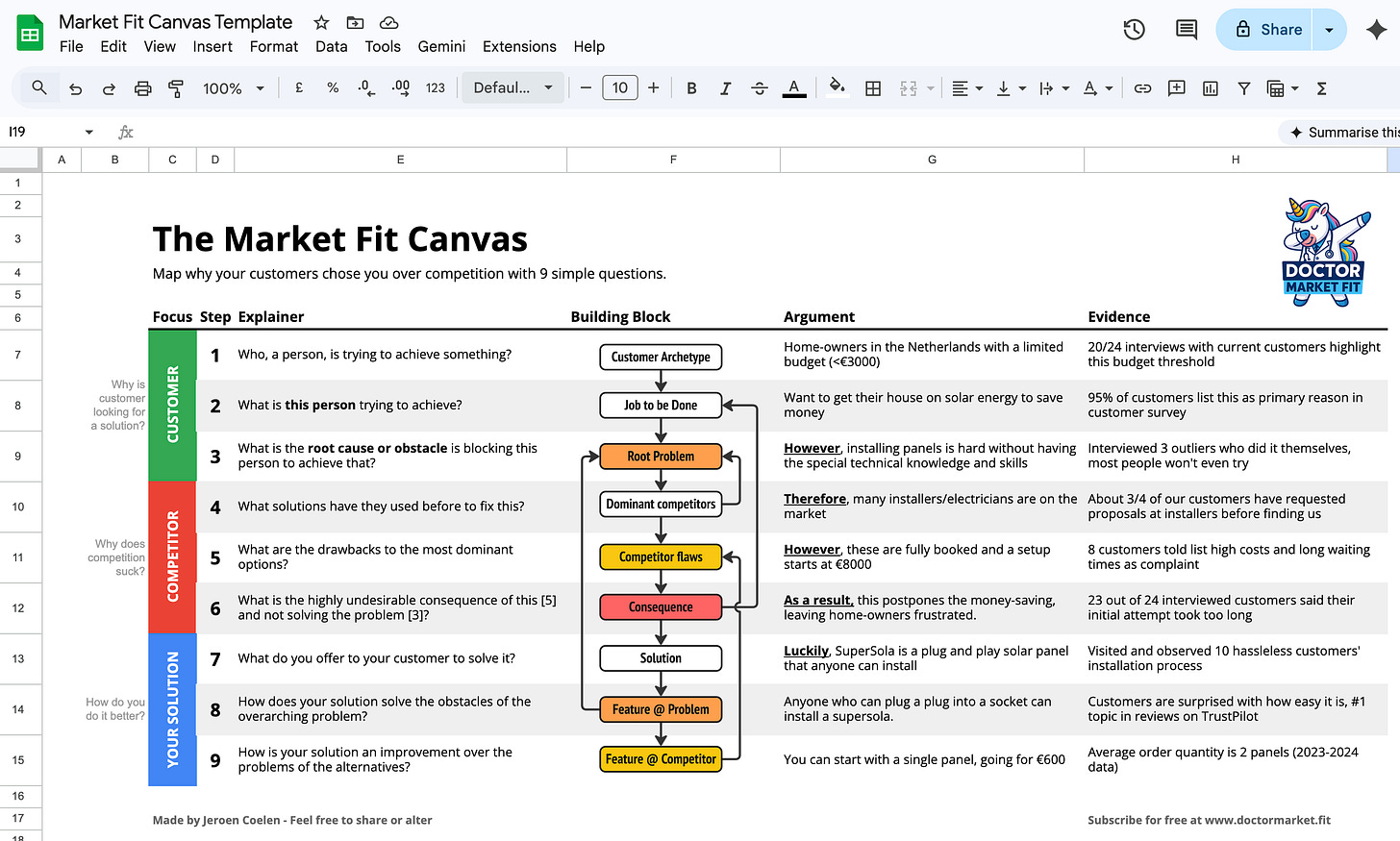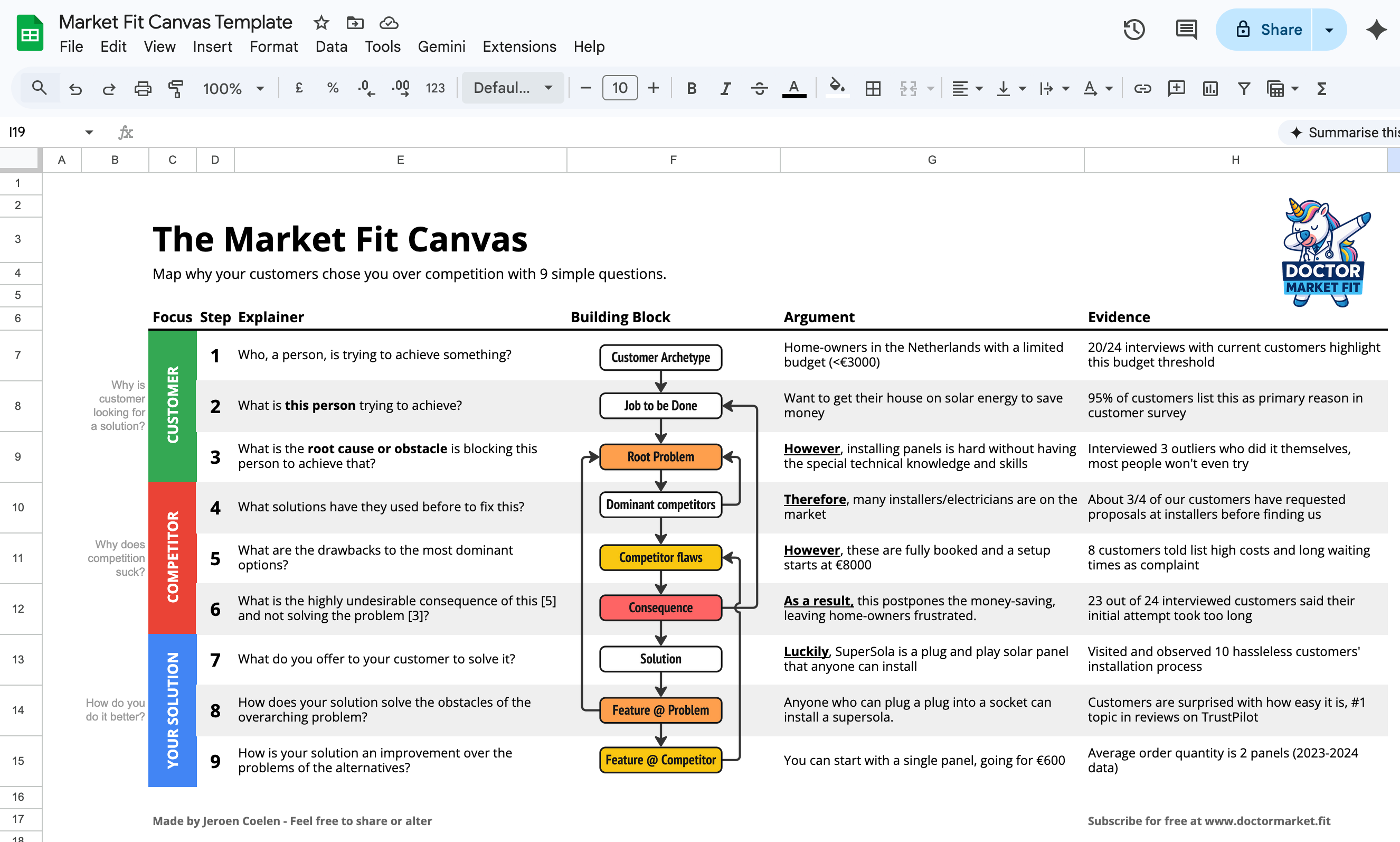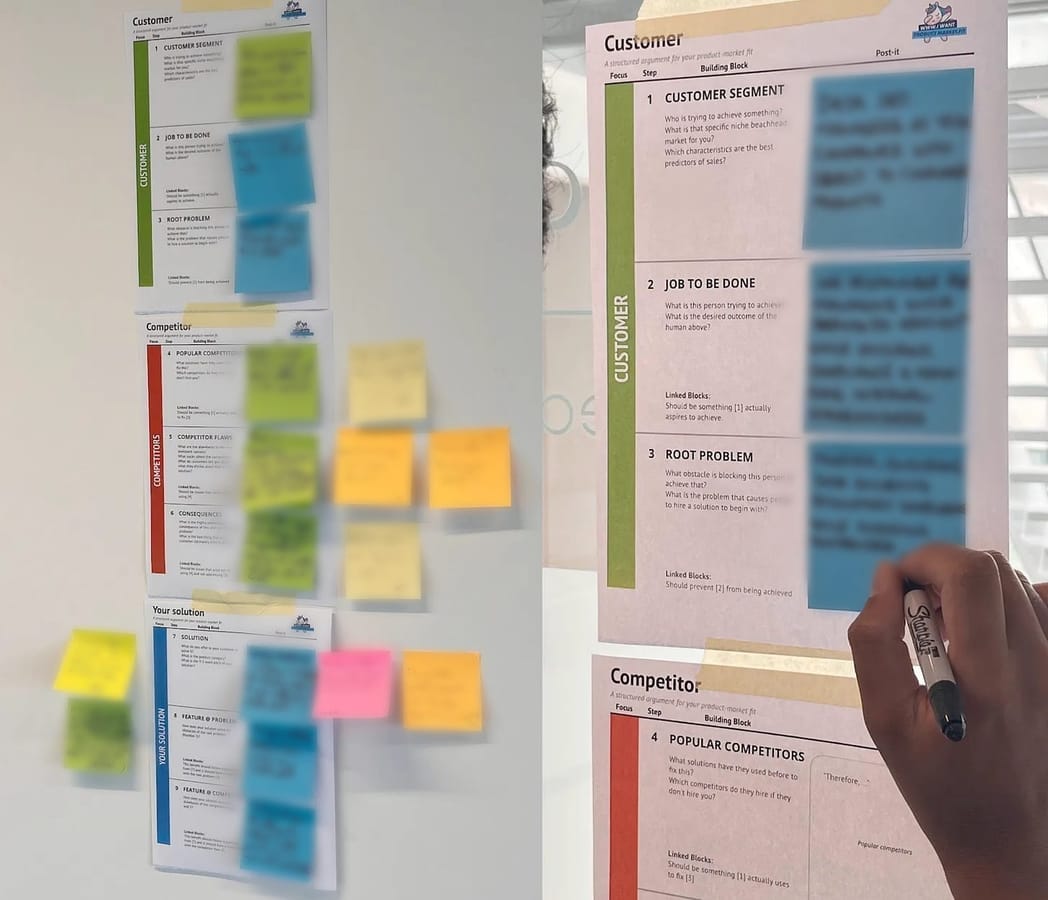 A post-it optimised worksheet! Print on A4, regular post-its fit in the box. Grab those post-its and run a Market Fit Workshop yourself.