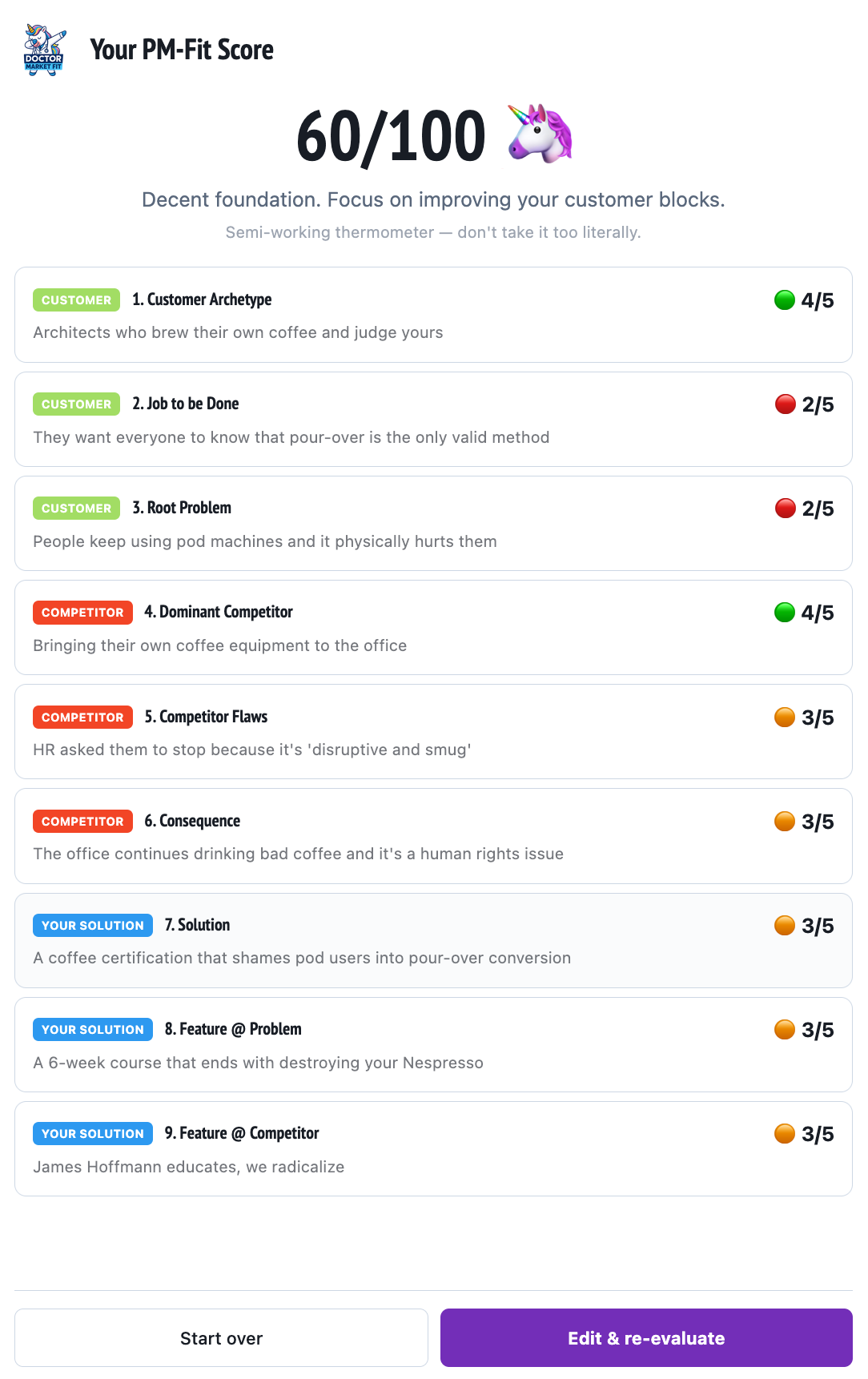 To use the framework, I’ve made a web app that gives feedback and a 0/100 score. Some screenshots below.