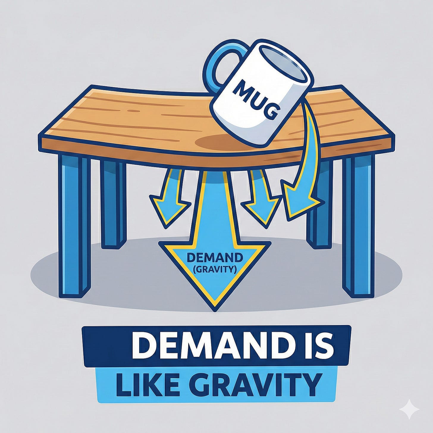 An interesting analogy I borrow from Ramoglou & Tsang (2016). They equate markets and demand to a mug on a table that doesn’t fall despite the gravity.