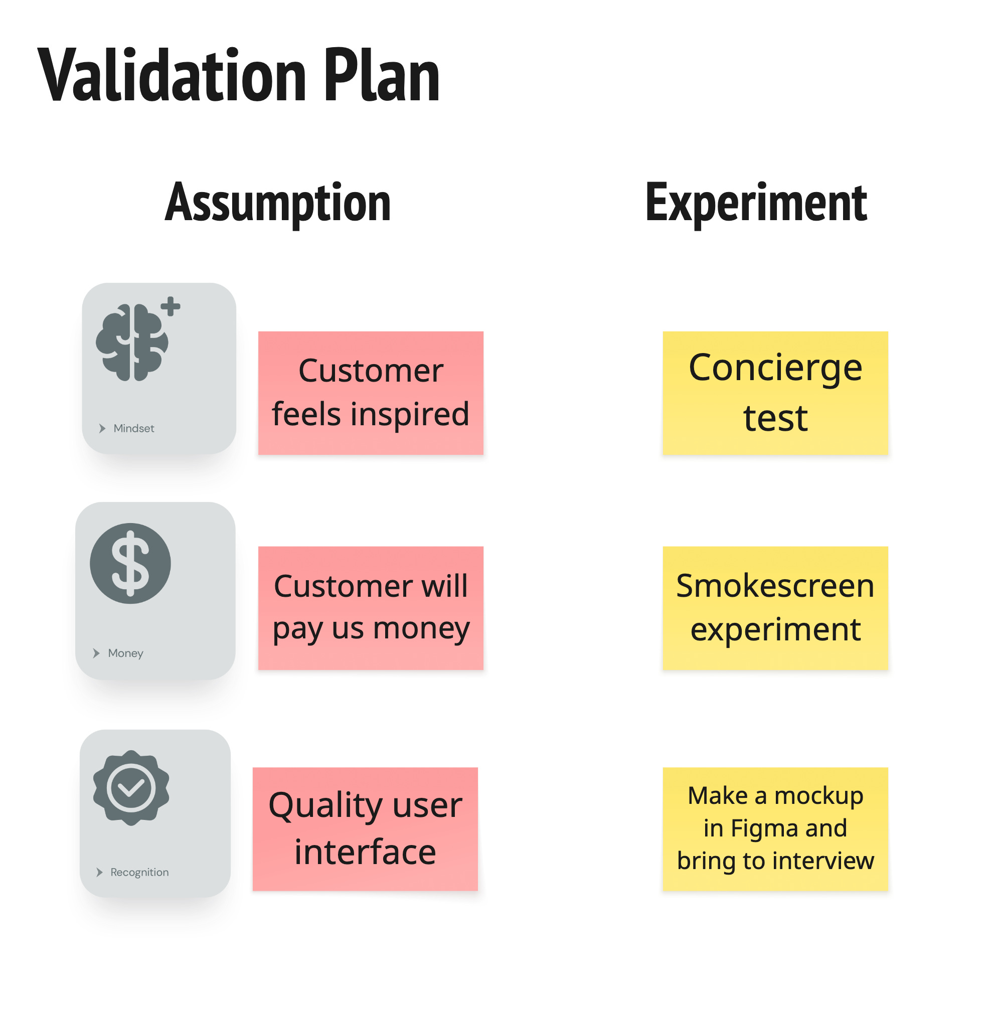 Green post-it: You feel confident for now that this is sufficiently validated